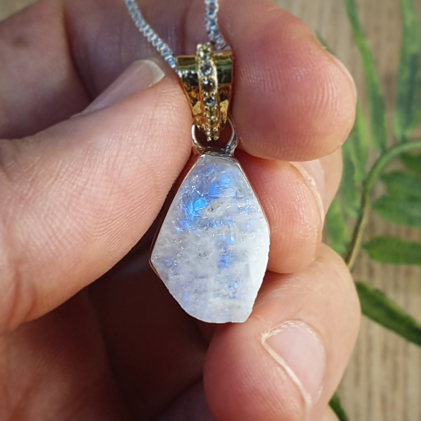 Moonstone is the new beginnings stone. It is a stone of inner growth and strength. It takes us in an inward journey, taking us deep into the self to retrieve the parts of the soul that were forgotten and brings them to light. It enhances intuition and brings success.